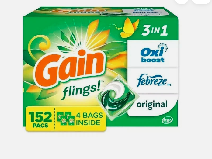 Gain flings! are the only laundry detergent that combines OxiBoost + Febreze all-in-one laundry detergent pac so that fabrics come out fresher and smelling ahhh-mazing, every load. Formulated with 50% more freshness ingredients* compared to regular detergents, Gain flings! infuse your fabrics with the delightful smell of Gain that lasts long after the wash.