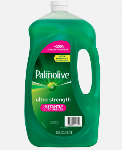This large 102 oz. bottle contains Palmolive Ultra Strength, the liquid dish detergent that is tough on grime and gentle on skin. Its ultra-concentrated formula has been proven to clean more greasy dishes, eliminate odors, cut grease, remove 24-hour stuck-on foods while never leaving behind residue.