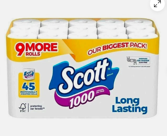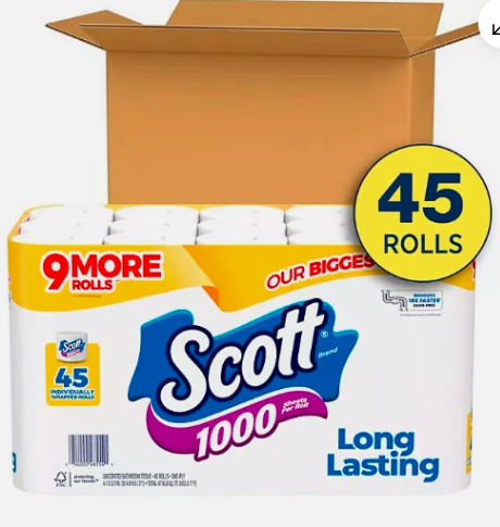 Scott 1000 1-Ply Toilet Paper 45 rolls, 1,000 sheets/ roll Free Shipping